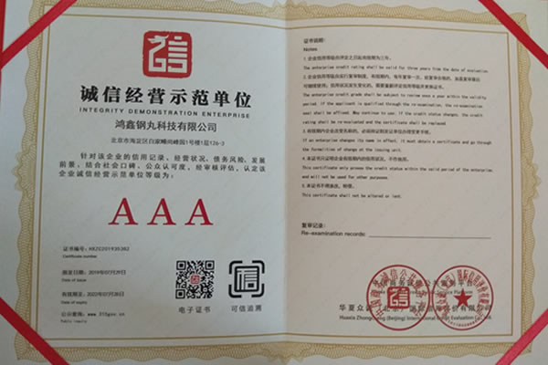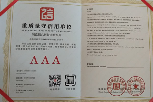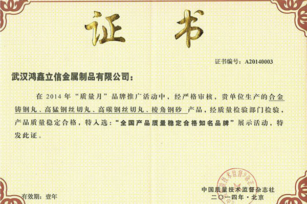 公司所有產品均通過ISO9001 **質量認證,2014年更獲得了第三屆中國金屬磨料行業(yè)具有影響力品牌-華尊獎